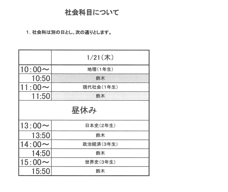 2021/01/20【再度お知らせ】1月21日のスクーリングについて